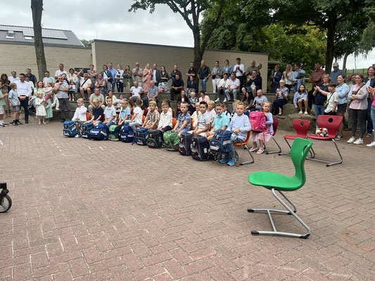 Anschließend versammelten sich alle auf dem Schulhof. Dort sangen einige SchülerInnen der Klassen 2 - 4 Willkommenslieder und unsere Schulleitung Frau Jelonek wünschte den Kindern einen tollen Start in ihre Schulzeit. Danach gingen die Kinder zu ihrer allerersten Unterrichtsstunde mit ihren neuen KlassenlehrerInnen Frau Peh, Frau Beckmann, Frau Kuhlmann und Herr Wenzel in die Klassen.